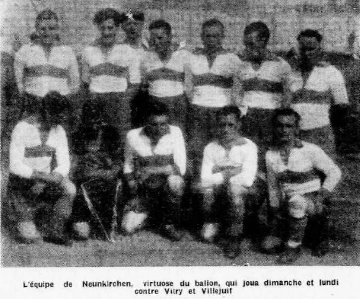 29 июля 1934 года. Большой Париж. Витри. Футбольная команда из Нойкирхена (Саар). «Команда из Нойнкирхена, виртуозы мяча, игравшая в воскресенье [29.07.1934] и понедельник [30.07.1934] против Витри и Вильжюифа» (еженедельник «Спорт» № 44 от 1 августа 1934 года)