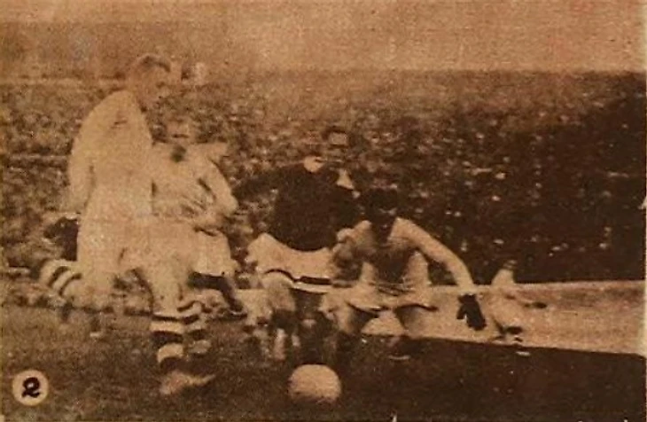 12 сентября 1933 года. Москва. Стадион «Динамо». Сборная Москвы – сборная Испании FCDO – 12:0. В атаке Сергей Иванов (газета «Красный спорт»)