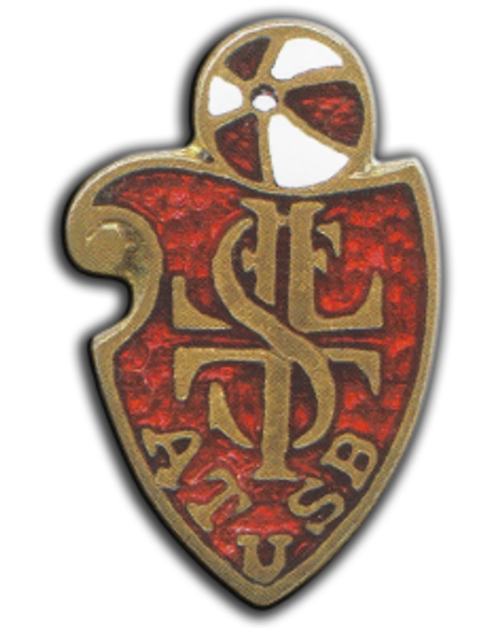 Эмблема ATSB (Arbeiter-Turn- und Sportbund) / Рабочего гимнастическо-спортивного союза Германии c «гимнастическим крестом» – Turnerkreuz [турнер кройц], первоначально образованном четырьмя латинскими буквами «F»: frisch, frei, fröhlich, fromm [фриш, фрай, фрёлих, фром] – cвежий, свободный, счастливый [веселый], набожный [благочестивый] (arbeiterfussball.de)