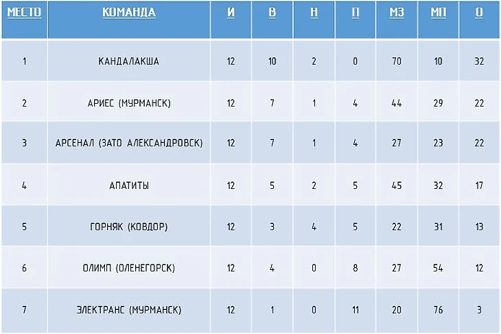 В заключение пару слов о Чемпионате Мурманской области. В 2023 году в первенстве приняло участие 7 команд. С большим отрывом выиграла Кандалакша, по дополнительным показателям второе место у мурманского «Ариеса», третий «Арсенал» из ЗАТО Александровск. Места с 4 по 6 заняли «Апатиты» из одноименного города, ковдорский «Горняк» и оленегорский «Олимп». Замкнул турнирную таблицу «Электранс» из Мурманска. Неплохой показатель для северного региона.