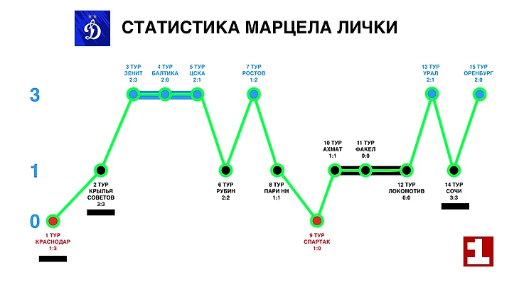 3 матча, в которых динамовцы пропустили больше 3 голов: Динамо - Краснодар (1:3), Крылья Советов - Динамо (3:3) и Сочи - Динамо (3:3). Если первые два матча еще хоть как-то можно понять, все-таки лидеры сезона атакующего плана, то результат с аутсайдером ФК Сочи просто не объяснить словами.