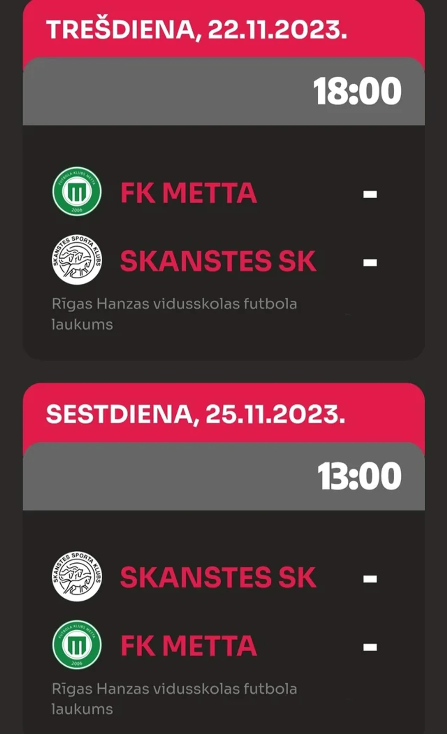 По стечению обстоятельств этой командой будет «Сканстес». До 2021 года клуб носил название «Метта-2», так как это дубль команды, играющей в элитном дивизионе.