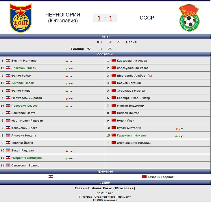 Прежде чем начать читать статью, рекомендую ознакомиться с моим ТГ каналом о футболе в Черногории Сборная Черногории по футболу — это команда, представляющая независимое государство Черногорию, которое объявило о своей независимости от Сербии в 2006 году. История этой сборной началась сразу после получения Черногорией международного признания, и она добилась некоторых впечатляющих успехов на мировой арене футбола за короткий период своего существования. Один из немногих неофициальных матчей, проведённых до становления независимой Черногории, состоялся 30 января 1970 года в Титограде между сборными Социалистической Республики Черногория и СССР и завершился вничью 1:1 (на гол Гиви Нодия хозяева ответили точным ударом Йосипа Тибласа)