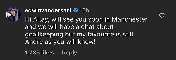 Комплимент турка дошел до самого голландца. Эдвин отправил немного дерзкое послание новичку «красных дьяволов»: