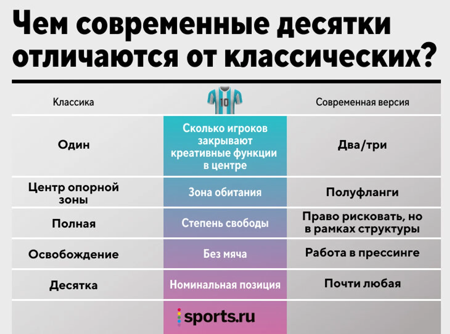 «Важная причина заката роли в том, что игра изменилась в сторону больших требований по физике. Футбол стал быстрее, все стали лучше готовы физически. Я говорил с игроками, которые играли в этой роли раньше. Они говорят, что сейчас абсолютно все стало быстрее, следовательно, креативные игроки получают меньше пространства».