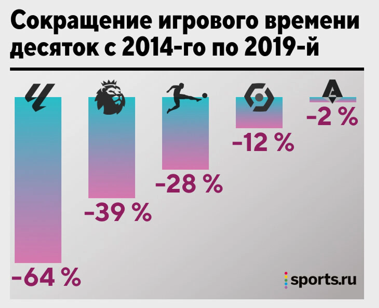 Тенденции прослеживаются не только через субъективные свидетельства пострадавших игроков, но и через исследования. В 2019-м аналитическая компания 21st Club показала тренд через максимально простой показатель – время, которое футболисты получают на позиции десятки: