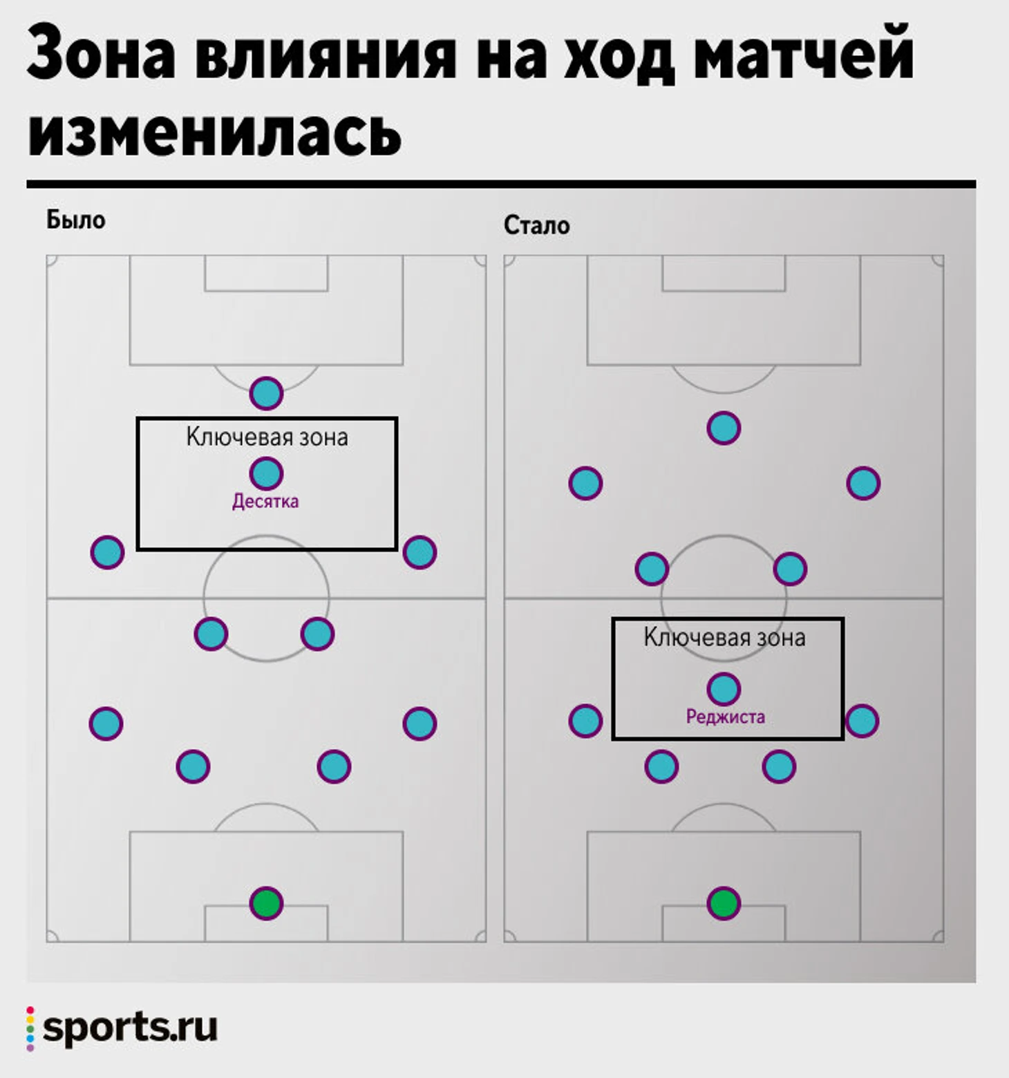 «Важный момент – теперь линия защиты должна располагаться выше, чтобы поддерживать прессинг. При такой высокой линии защиты зона обитания десяток сужается. Раньше у нас было больше пространства, потому что защитники боялись получить пас за спину от креативного парня и садились поглубже. Формировался определенный разрыв между линиями».