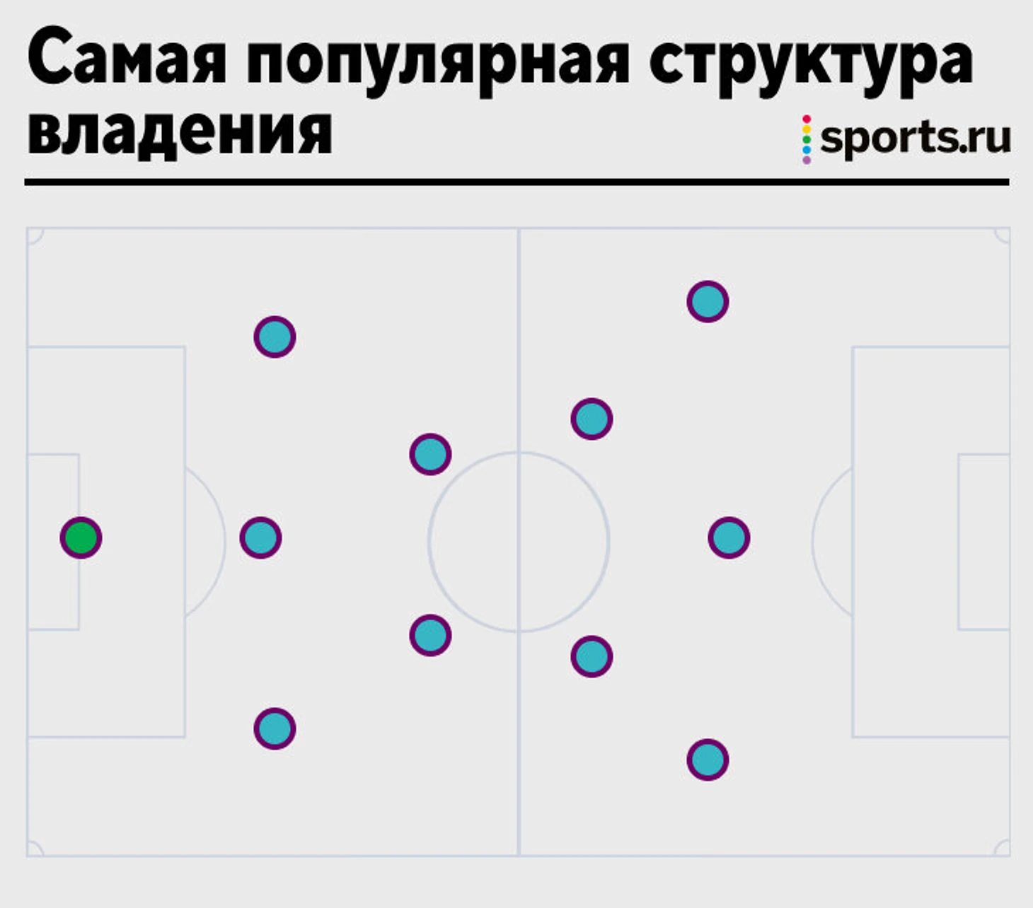 Прямо сейчас главная преграда к потенциальному ренессансу роли десятки даже не конкретная схема и необходимость работать без мяча, а структура, которую почти все топ-клубы используют при владении. Она выглядит так: