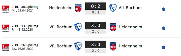 «Бохум» выиграл пять предыдущих дуэлей (все во второй Бундеслиге), причем в трех последних не пропустив ни мяча. А вот последний успех «Хайденхайм» отмечал более пяти лет назад в домашнем матче (3:2, 29 сентября 2018). При этом клуб одержал самую крупную победу над «Бохумом» в своей истории (5:0, 28 сентября 2014), что для последнего стало самым крупным поражением во второй Бундеслиге.