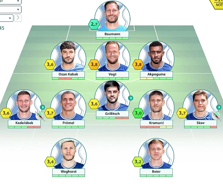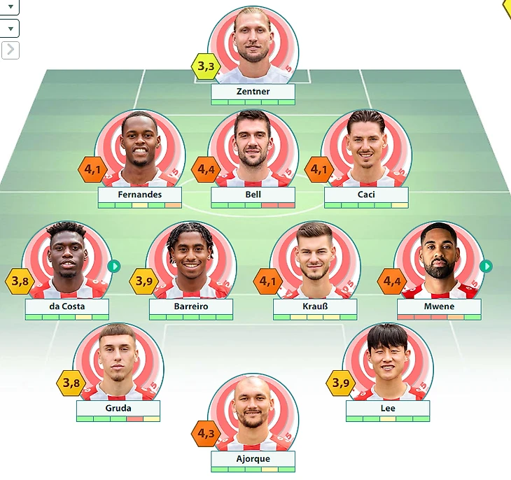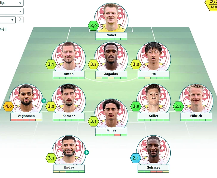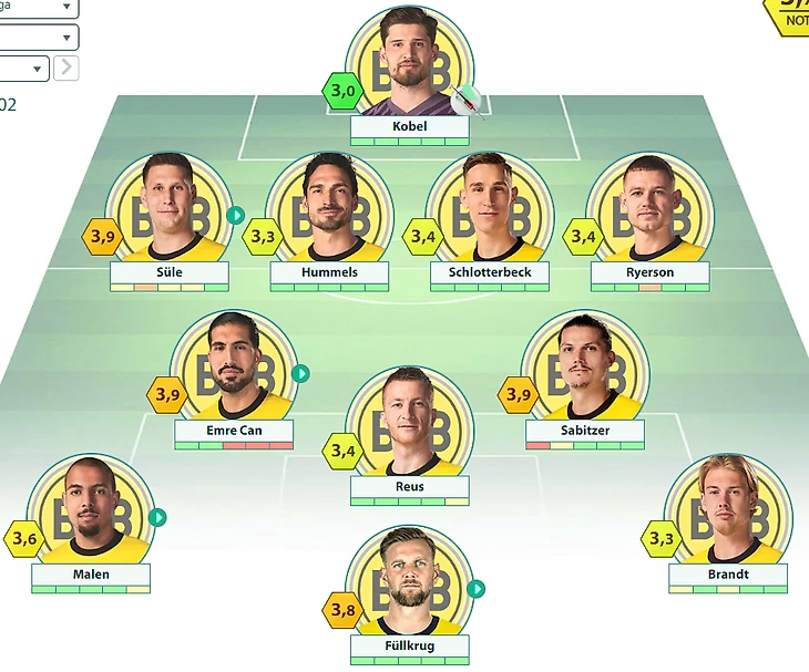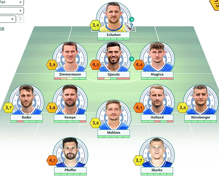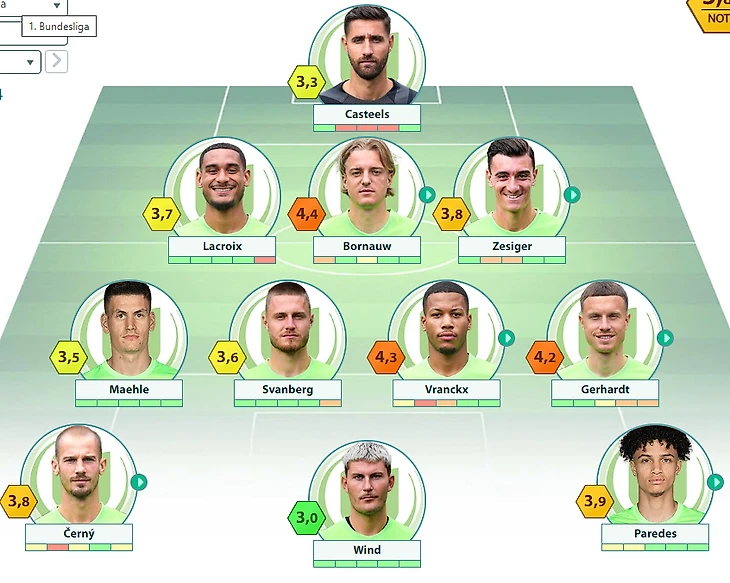 Ориентировочные составы (здесь и далее – версия Bundesliga.com – текст, версия LigaInsider.de – скрин):