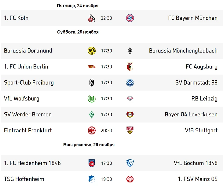 Возможные потери (здесь и далее – версия Bundesliga.com – выбыл (под сомнением)): Пентке (Кристенсен) – Бухманн, Де Лигт, Мусиала (Геррейру)