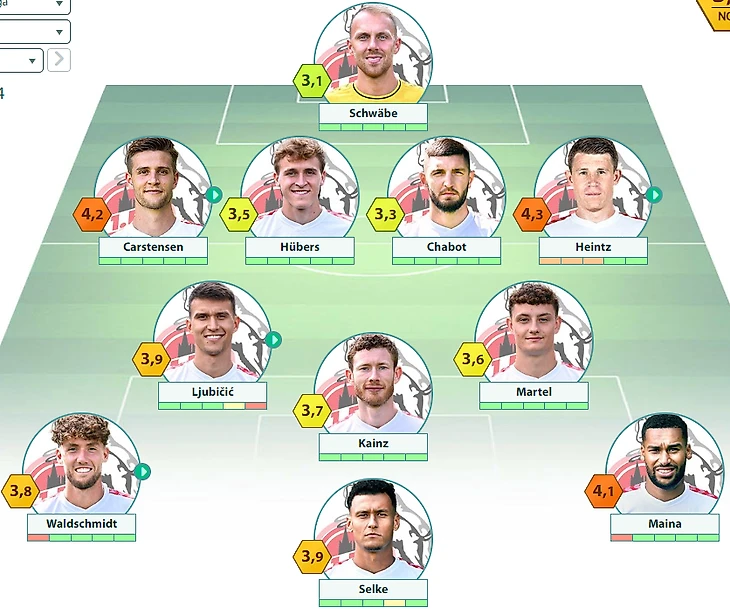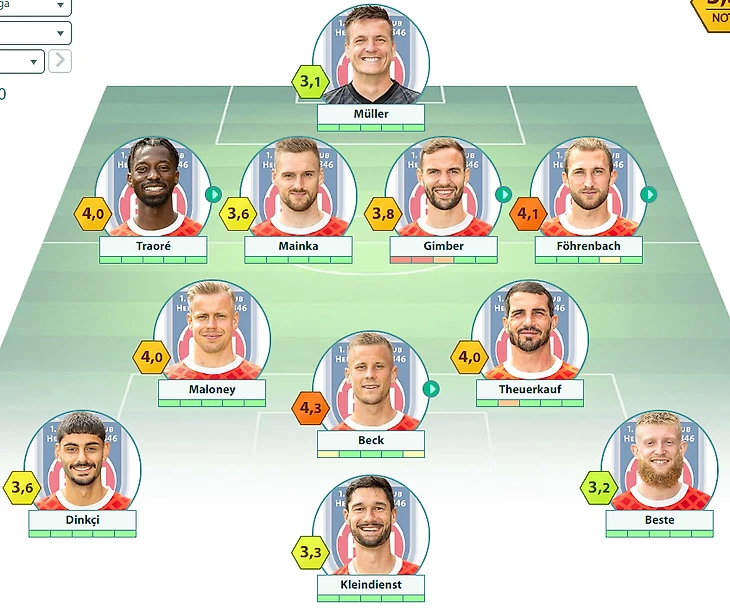 «Хайденхайм» : Мюллер – Траоре, Майнка, Гимбер, Ференбах – Мэлоуни, Тойеркауф – Динкчи, Бек, Бесте – Кляйндинст