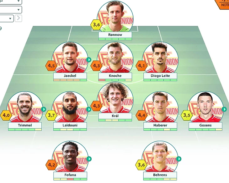 «Унион» Берлин : Реннов – Йеккель, Кнохе, Лейте – Крал – Юранович, Лаидуни, Хаберер, Гозенс – Беккер, Беренс