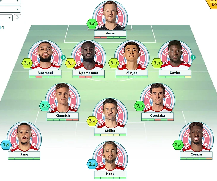 «Бавария»: Нойер – Мазрауи, Упамекано, Ким, Дэвис – Киммих, Горецка – Сане, Мюллер, Коман – Кейн