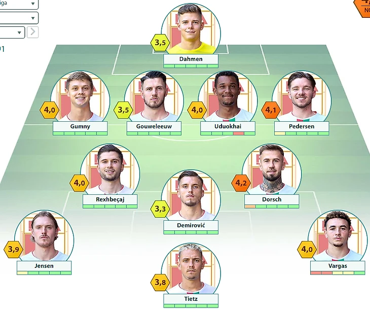 «Аугсбург» : Дамен – Гумны, Гауэлеу, Удуохай, Педерсен – Реджбечай, Дорш – Йенсен, Демирович, Варгас, Титц
