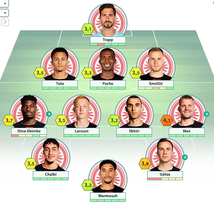 «Айнтрахт» Франкфурт : Трапп – Тута, Смолчич, Пачо – Дина-Эбимбе, Ларссон, Схири, Макс – Шаиби, Кнауфф – Мармуш