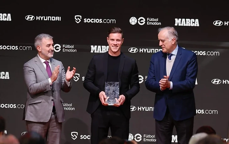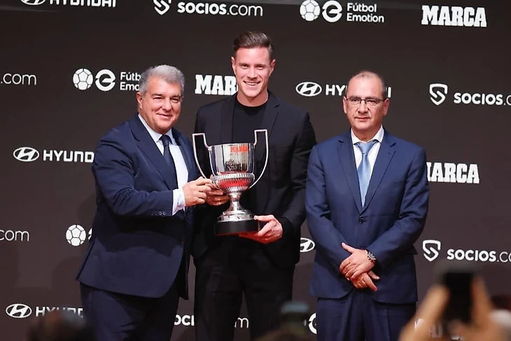 Помимо этого, тер Стеген получил награду MVP сезона Ла Лиги - пожалуй, самая ценная индивидуальная премия церемонии.