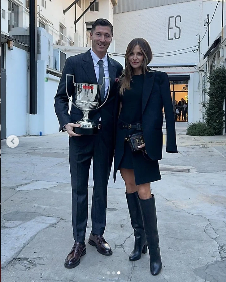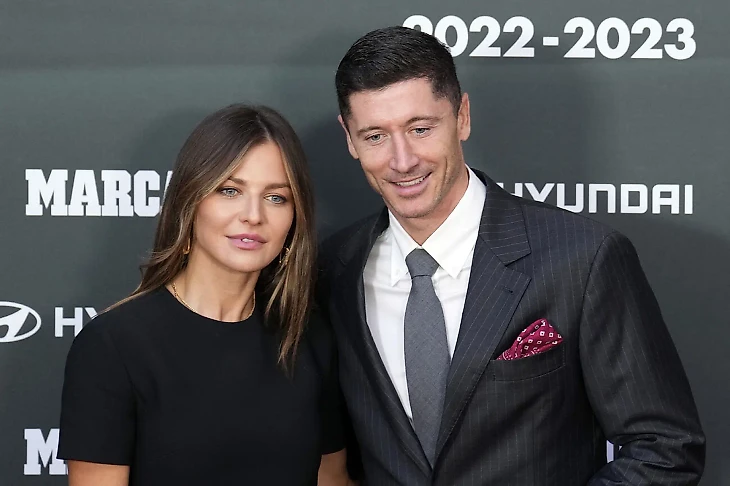 Поляк отметился 23 голами в прошлом сезоне, а теперь получил заслуженный трофей. Роберт посетил мероприятие вместе со своей женой Анной.