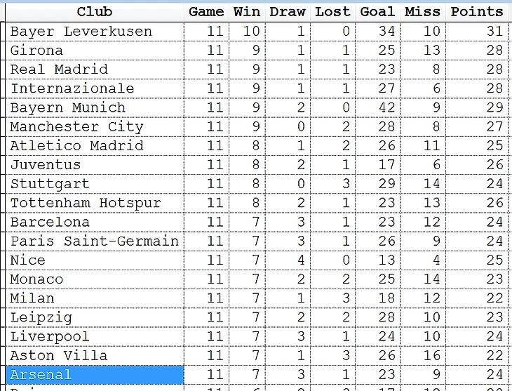 Ситуация после 11 туров футбольных чемпионатов топ-5