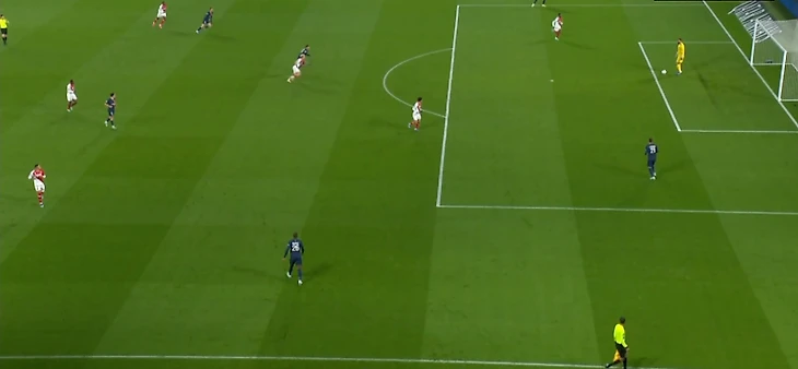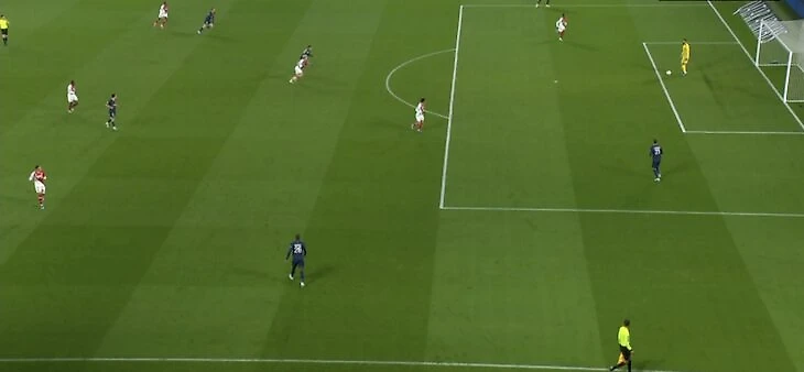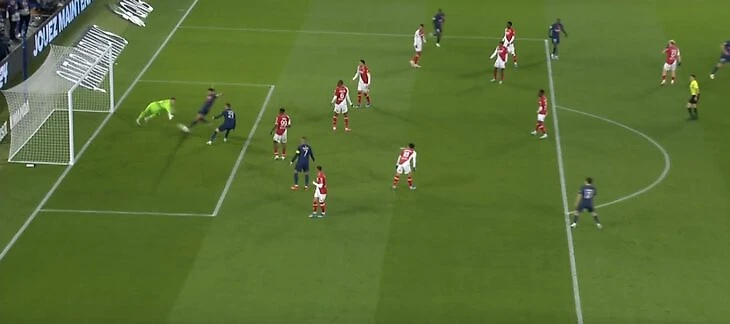 Через четыре минуты отметился уже вратарь «ПСЖ» Джанлуиджи Доннарумма. Итальянец промедлил с передачей и выбил прямо на Такуми Минамино – японец не простил внутри штрафной. Отметим давление Фоларина Балогуна – именно его резкий спринт испугал голкипера.