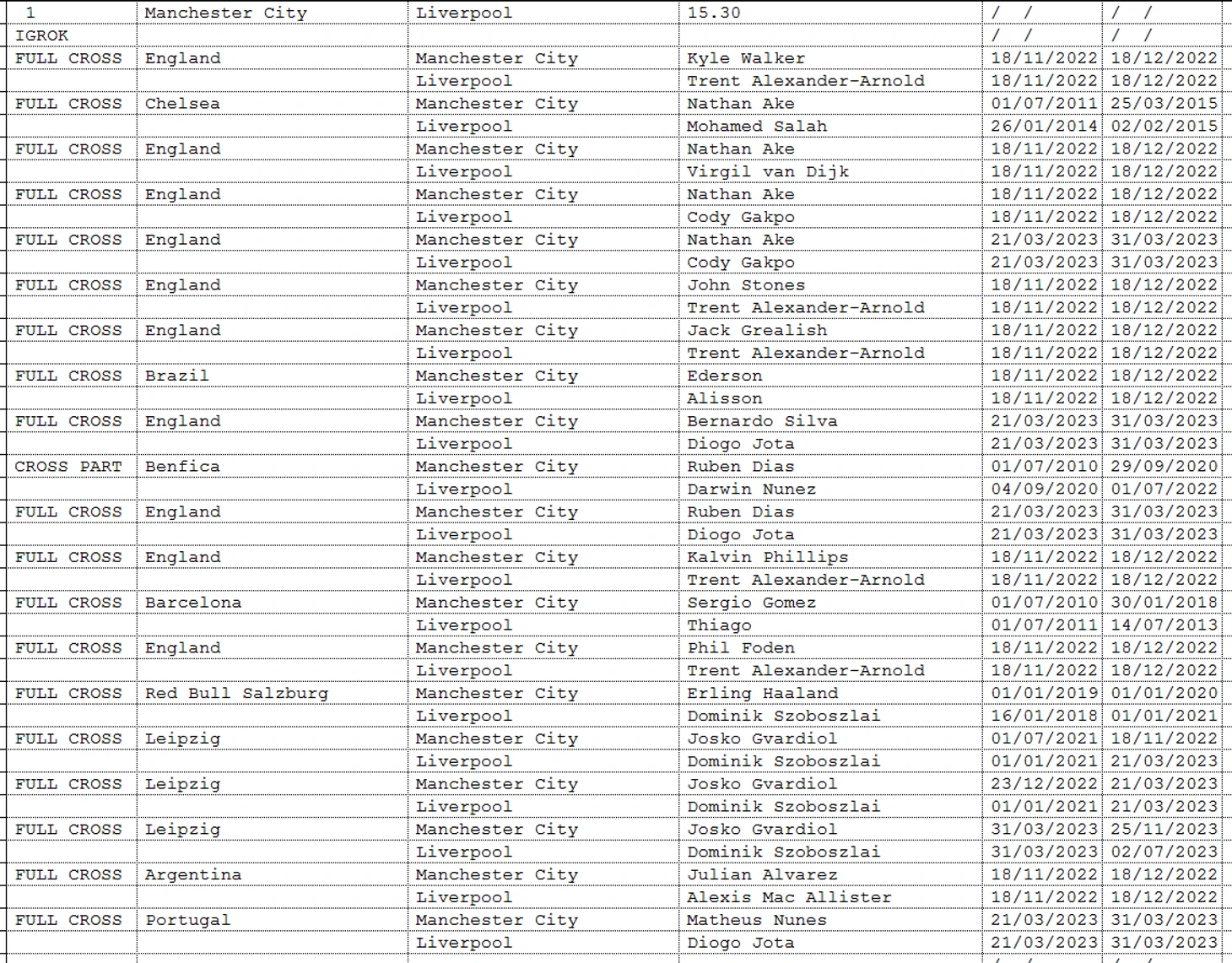 Вашему вниманию предоставляется информация 1.игроки выступали в прошлом за клуб-соперник. 2.Соперники играли за один и тот же клуб (возможно в разное время- NO CROSS)