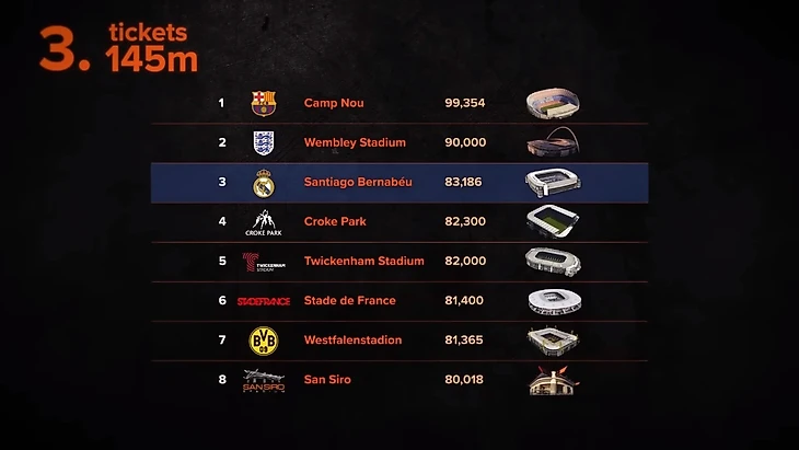 Продажа билетов — старейшая и, как правило, наиболее надежная форма дохода футбольных клубов. Мадридский стадион - «Сантьяго Бернабеу» является одним из крупнейших в европейском футболе и приносит клубу впечатляющие 145 миллионов евро в год. К сожалению, стадионы ограничены своей вместимостью.