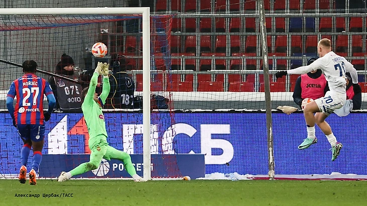 После перерыва ЦСКА создал лишь один опасный момент. Файзуллаева вывели один на один и тот не смог обыграть Лещука. Как говорится: «Не забиваешь ты, забивают тебе». После этого упущенного эпизода гости перехватили инициативу и начали играть, как армейцы до перерыва. Вскоре после скидки от Тюкавина Бителло вновь сделал счет равным. А затем после удара Карраскаля и рикошета, мяч попал к Тюкавину, который вывел динамовцев вперед.