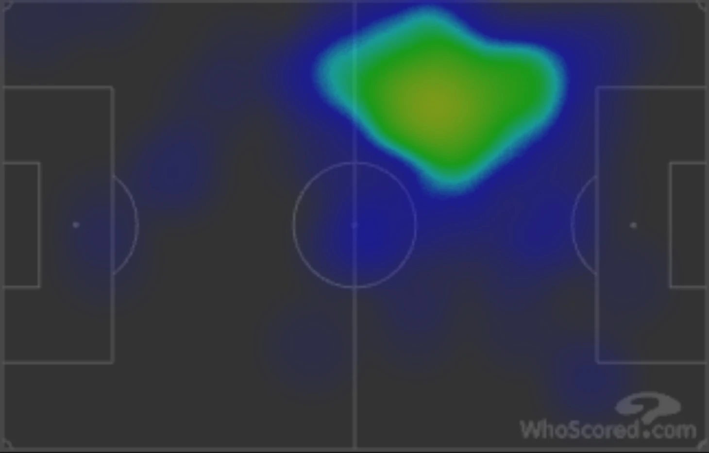 Интересно то, что номинальное Паскаль Гросс находится глубже к обороне из этой тройки, вот тепловая карта в матче с МЮ.