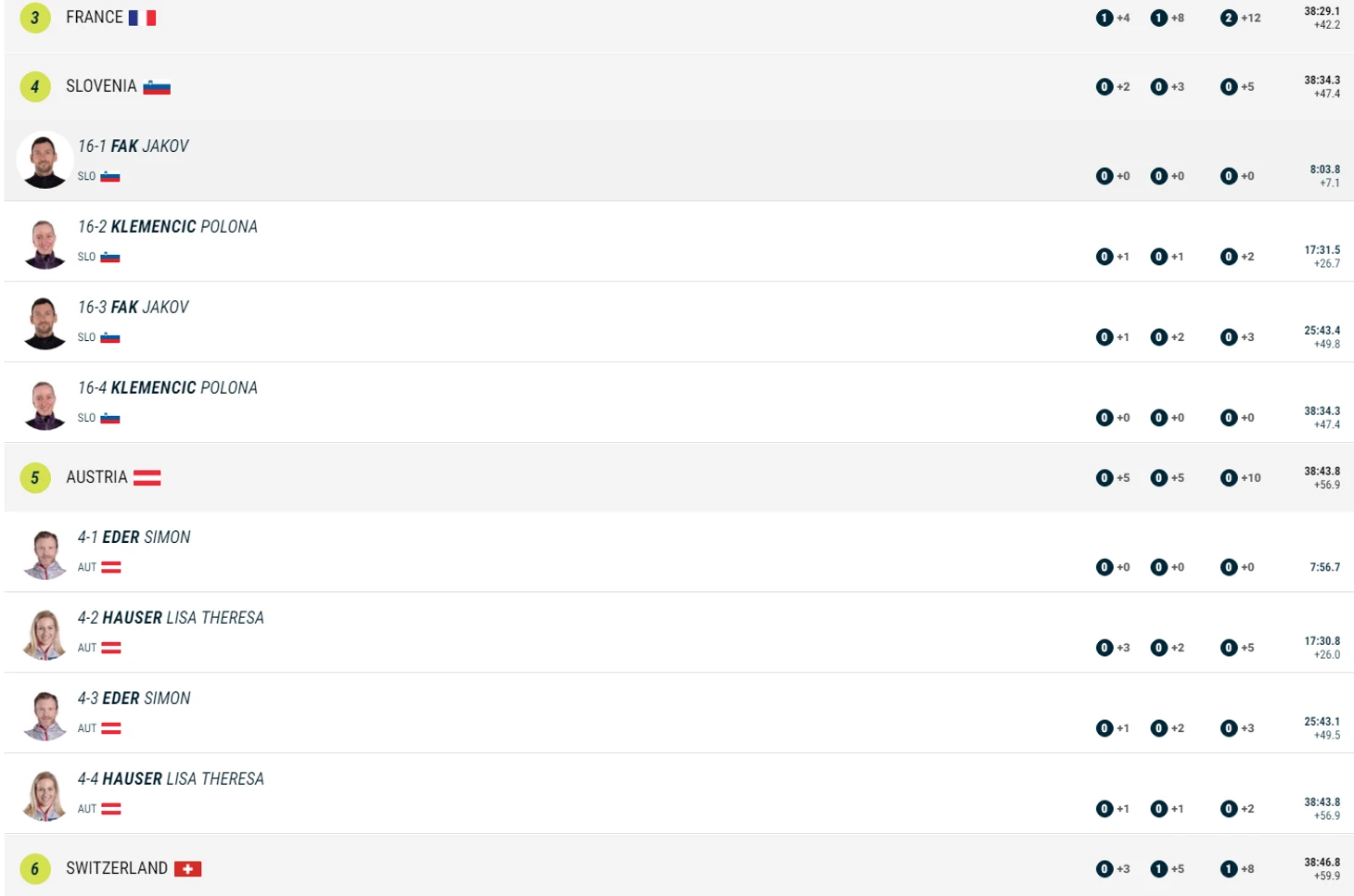 Одиночная смешанная эстафета в Эстерсунде словенцев и австрийцев