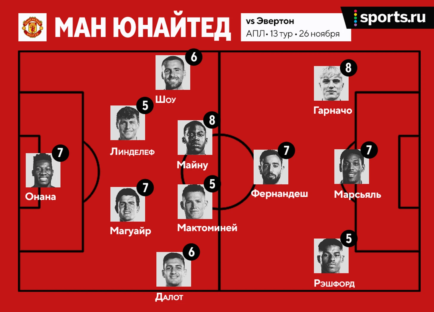 Майну и Гарначо лучшие. Рейтинг игроков «МЮ» в матче с «Эвертоном»