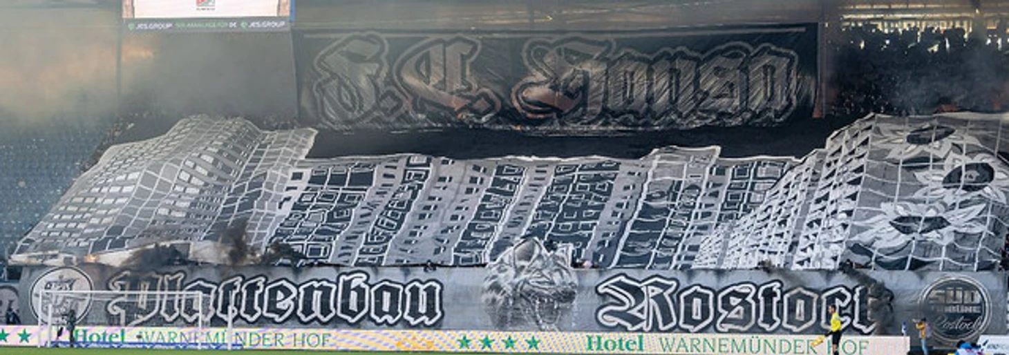 В словах официальных лиц, безусловно, есть своя правда, так как даже на бригадном баннере «Plattenbau Rostock» изображён панельный дом. И на нём, кстати, тоже присутствует надпись «ФК Ганза», пусть в отличие от перфоманса написана она под домом, а не над ним.