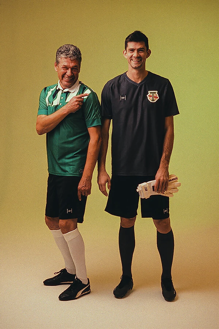 Мы воспользовались возможностью проложить «связь времен»: в видео про третий комплект снялись Савичев, который в 93-м году играл в зеленом «Хольстене», и Бабурин, который родился в 93-м, а теперь капитанит в «Торпедо». Уверен, этого никто не заметил, но такая вот игра со временем через персонажей.