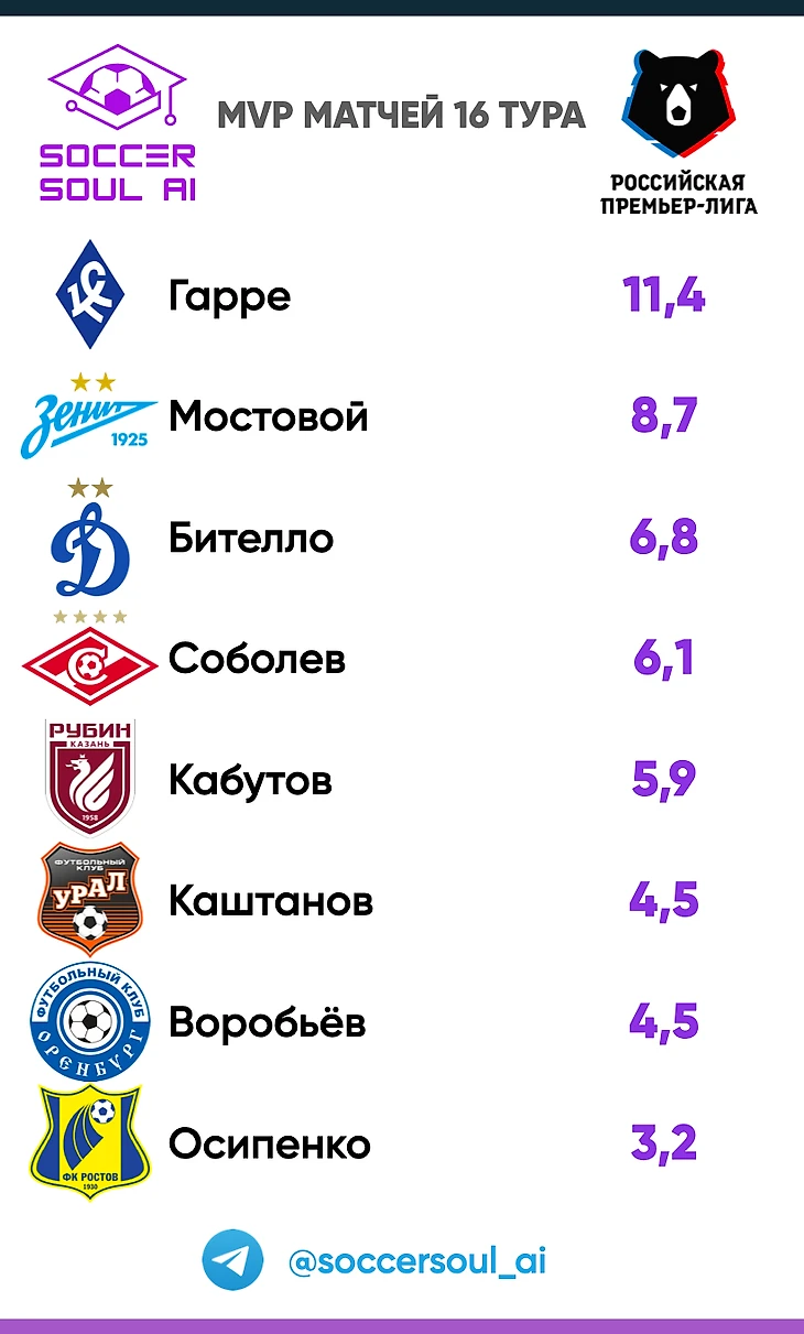 📊 Уже совсем скоро нас ждёт тур 17-й, где каждая из команд, и я вместе с ними, сможем реабилитироваться за все промахи.