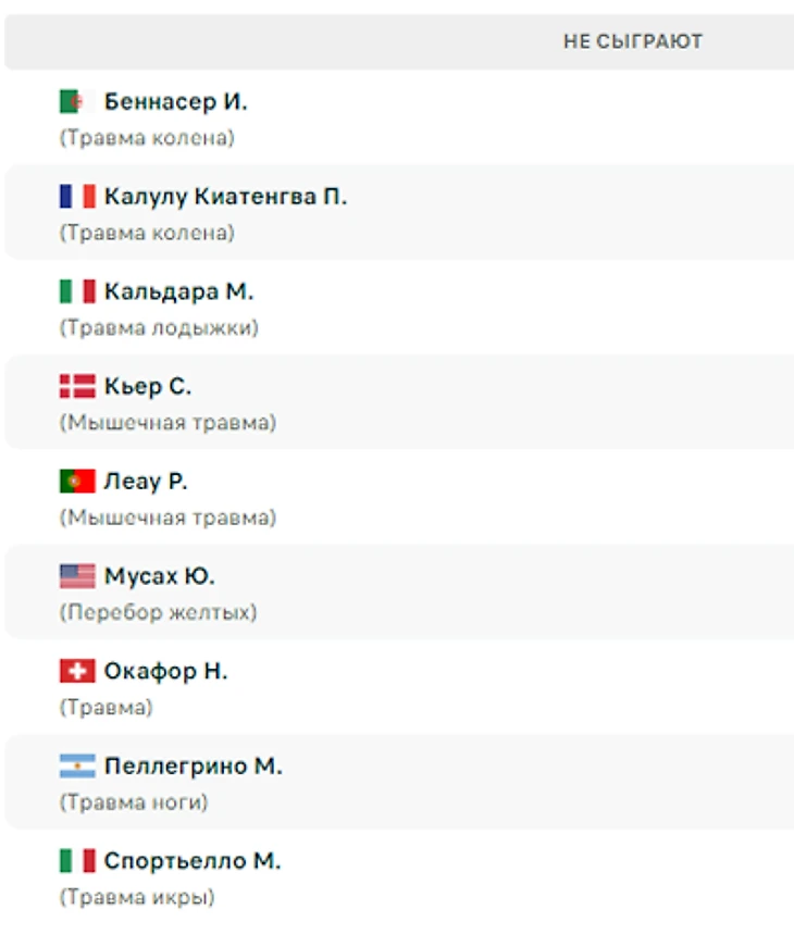 У Милана 9 травмированных игроков, из которых шесть - потенциально игроки оборонительного плана. Ни два, ни три. Шесть!