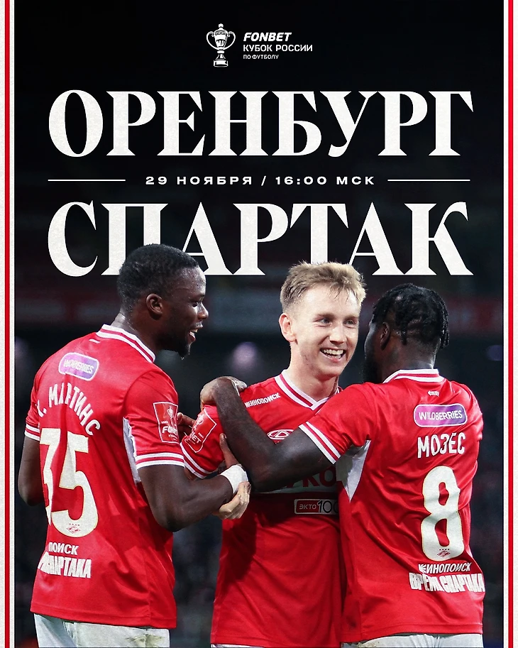 Состав «Спартака» на кубковый матч с «Оренбургом»