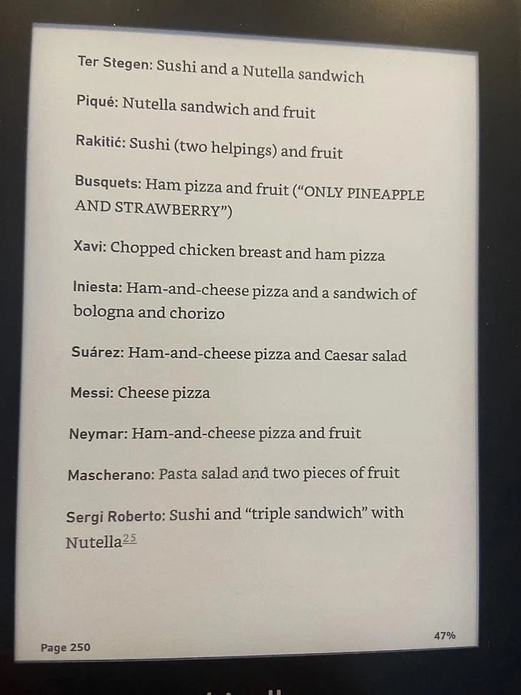 Месси - сырная пицца, Ракитичу - суши, а Пике - нутелла: опубликовано послематчевое меню той самой «Барсы»