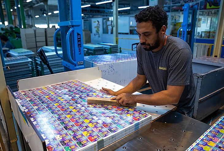Поначалу производство было довольно кустарным. Наклейки печатали на большом листе, а затем вырезали (возможно, вручную). На следующем этапе их перемешивали лопатой, чтобы в одном пакетике не было одинаковых. После процедуру чуть модернизировали: наклейки перемешивали в маслобойке. Так продолжалось, пока к делу не подключился брат-инженер Умберто. Он изобрел машину, которая автоматически фасовала карточки, не допуская повторов.