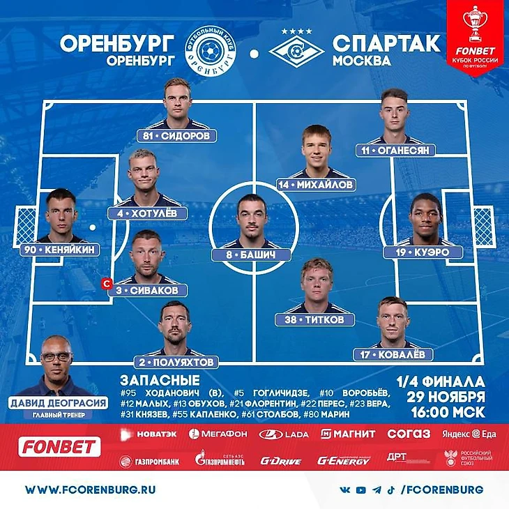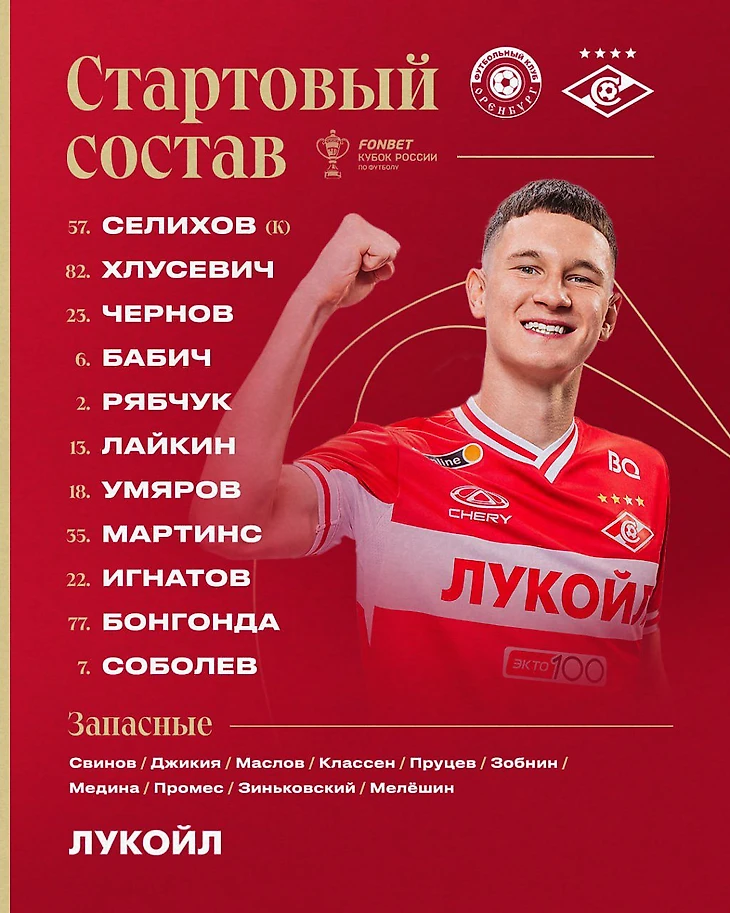 У «Спартака» выходит практически основная оборона и Соболев, в остальном тоже резервисты.