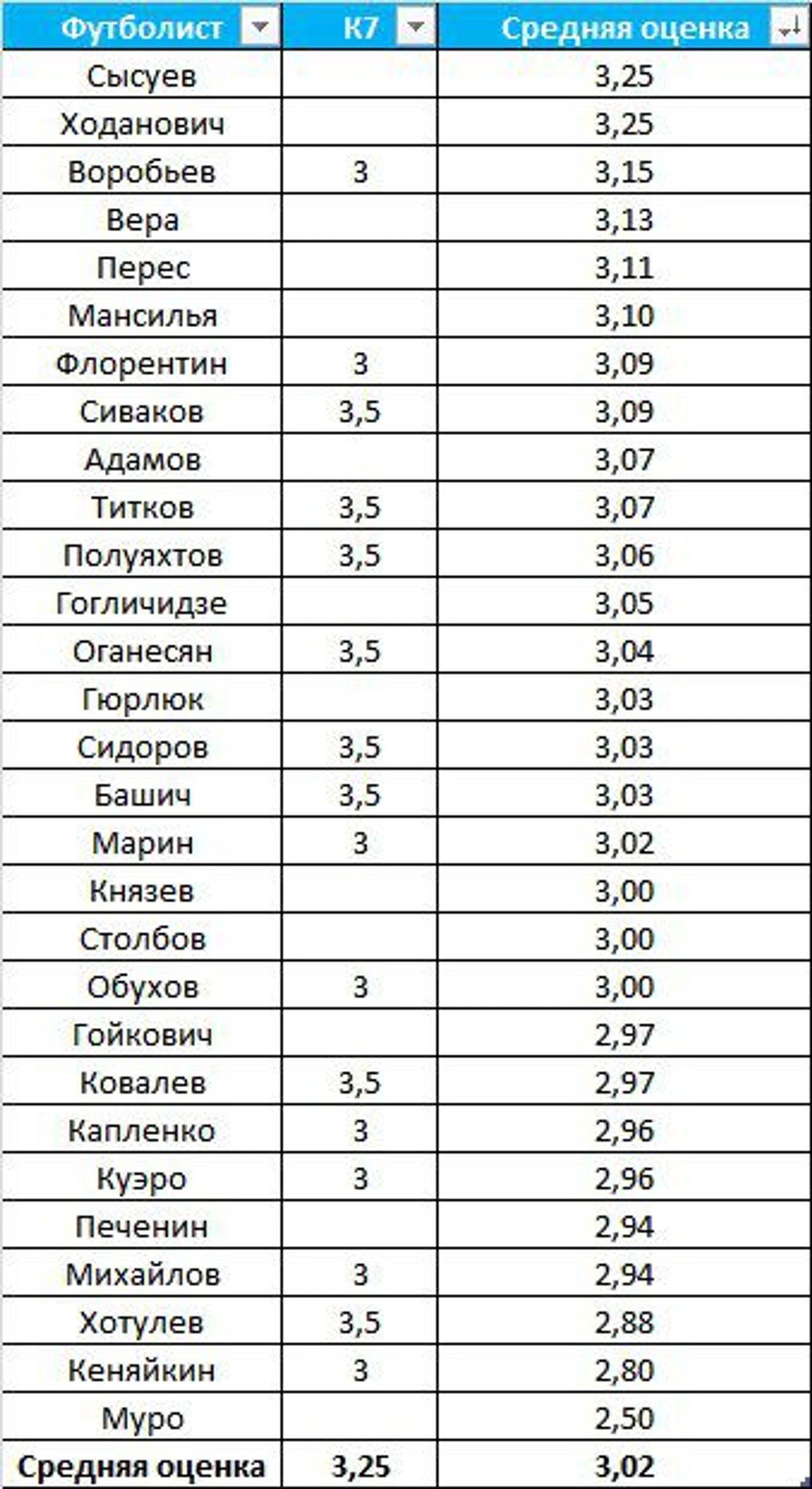 В целом по сезону видно, что оценки размыты, из них неочевидны игроки основы и лидеры команды (в отличии от прошлого сезона).