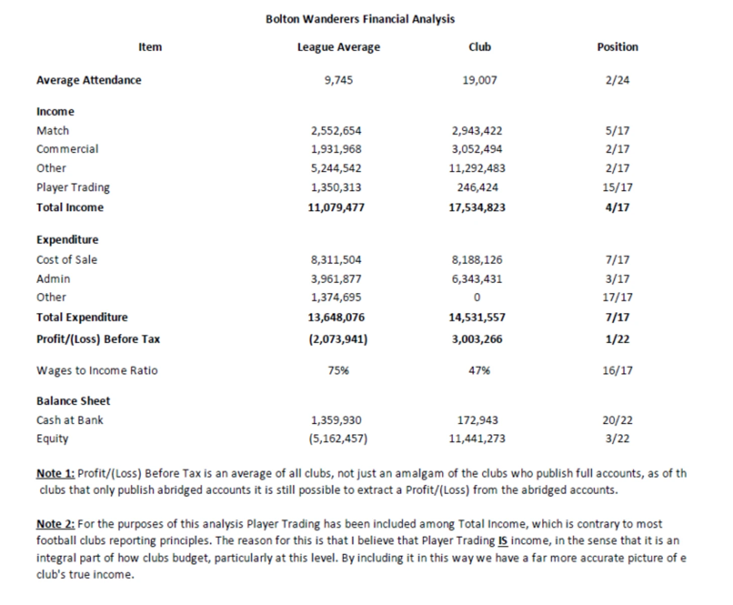 Как мы видим, у них один из самых высоких доходов в дивизионе — 17,5 млн фунтов, хотя эта цифра несколько завышена из-за конвертации долга в акционерный капитал на сумму чуть более 8 млн фунтов в течение года. Еще один признак хороших владельцев, делающих правильные вещи для клуба. Они заработали лишь умеренную сумму от торговли игроками, но имели второй по величине коммерческий доход - чуть более 3 миллионов, и эта сумма будет еще больше увеличена благодаря их новому пятилетнему соглашению о правах на название стадиона с компанией Toughsheet Limited. Я до сих пор думаю об их стадионе как о Рибок Стэдиум, но отныне он будет называться Тафщит Стэдиум (злословные соперники уже читают этот не иначе как tough shit)! Они были самым прибыльным клубом в дивизионе с прибылью чуть более 3 миллионов, хотя в своих отчетах они описали бы это как «управляемый торговый убыток», если бы кредит материнской компании не был признан невыплаченным и сумма не была бы возвращена на счет прибылей и убытков.