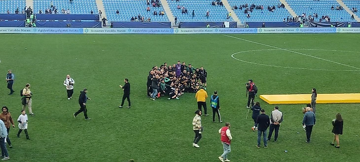 Самым классным эпизодом награждения, по моему мнению, стал момент, когда капитан Динамо Батуми Мамука Кобахидзе вместе с трофеем Чемпионата Грузии (совсем не кубок, больше напоминает «салатницу» Бундеслиги) отправился к сектору «пиратов», чтобы отметить чемпионство вместе.