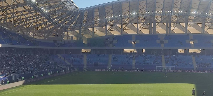 Стартовые минуты получились очень бодрыми. Сначала у батумцев отличился Фламарион: после обреза гостей получил пас от Георгия Зария в районе 11 метров, и отправил мяч в нижний угол от штанги. Это был 17 гол бразильца в чемпионате, к слову, после смены тренера зависимость от его результативности заметно снизилась: 13 мячей до летнего перерыва в сезоне, и только 4 после. Еще через десять минут с подачи со штрафного, от все того же Георгия Зария, ударом головой отличился капитан команды - Мамука Кобахидзе. На моей памяти, из половины посещенных домашних игр, это был первый гол центрального защитника. В этом эпизоде явно сплоховал кипер гостей - мяч прошел «сквозь» перчатки.