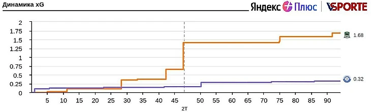 Как обычно цифры доказывают, что у Деограсии большие проблемы с адекватностью оценки игры. XG 1.68-0.32, то есть даже на один гол «Оренбург» и близко не наиграл.