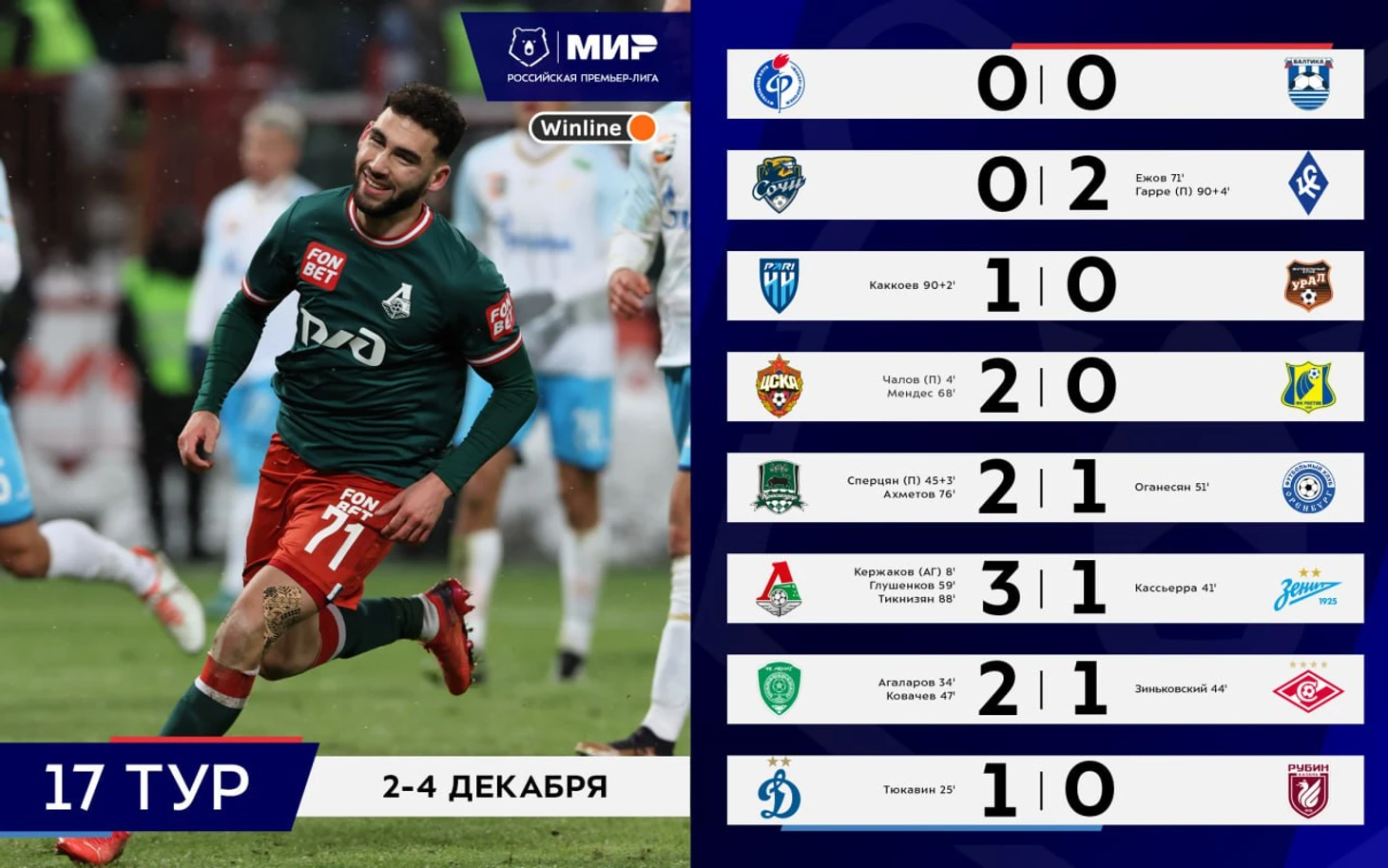 «Локомотив» во второй раз в сезоне обыграл «Зенит». «Краснодар» вернулся на первое место.