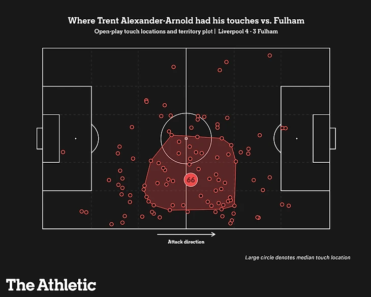 Карта касаний Александер-Арнолда в матче подчеркивает, как мало он играл на позиции правого защитника.