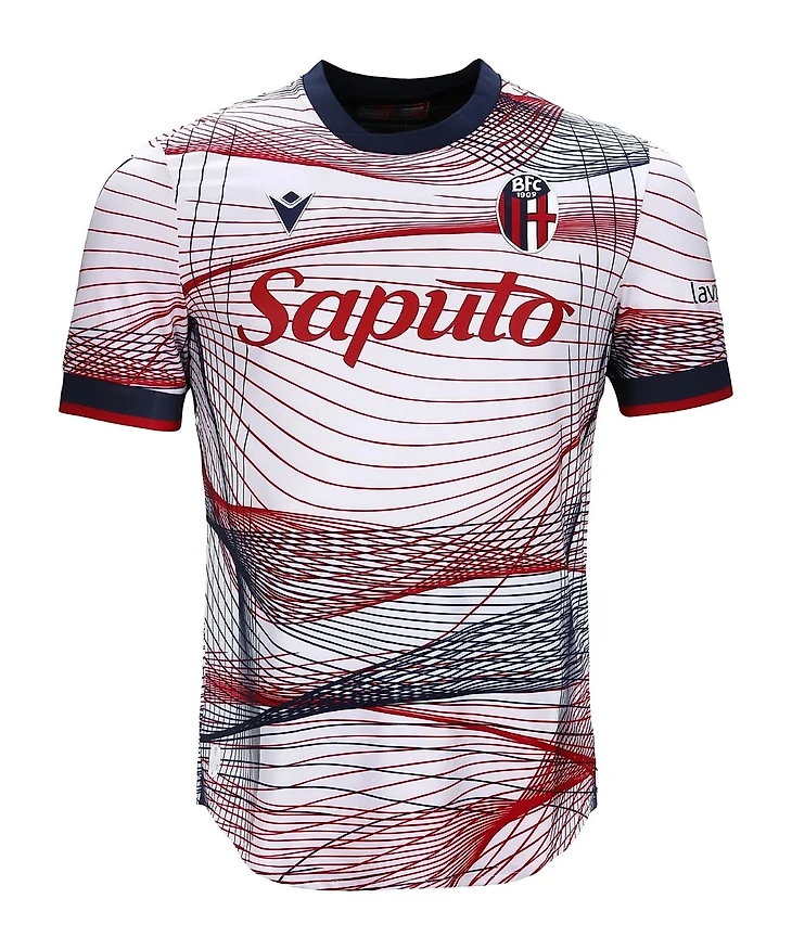 Сотрудничество Macron с «Болоньей» длится уже 22 года, и этот клуб безусловно является для бренда приоритетным. Как и другие экипировщики, Macron делает домашнюю и гостевую формы в традиционных цветах, а уникальными создаёт третьи комплекты, в которых использует графические принты. В джерси «Болоньи» производитель совместил привычные красно-синие полоски с раппортом эмблемы на лицевой стороне формы и рукавах. На рукавах также размещена V-образная полоса, который подчёркивает логотип Macron, а воротник сделан в стиле поло.