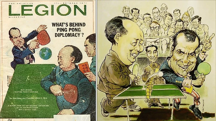 Потепление отношений началось в 1971 году благодаря чемпионату мира по настольному теннису. На турнире в Японии выступали и китайцы, и американцы. Однажды игрок сборной США Гленн Коуэн опоздал на автобус, который вез спортсменов в отель после тренировки. Чтобы добраться до номера, он попросился в шаттл другой команды – в его салоне оказались китайцы. Завязался разговор с обменом подарками, историю подхватили японские журналисты, и в одном из интервью Коуэн признался, что хотел бы съездить в Китай. Мао Цзэдун быстро отреагировал: распорядился организовать поездку для американских теннисистов, и 15 человек (в том числе 9 игроков) уже через несколько дней осматривали достопримечательности КНР и сыграли в товарищеском турнире.