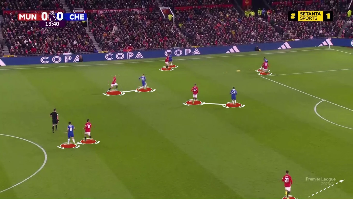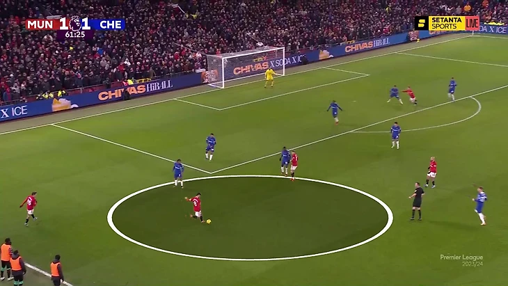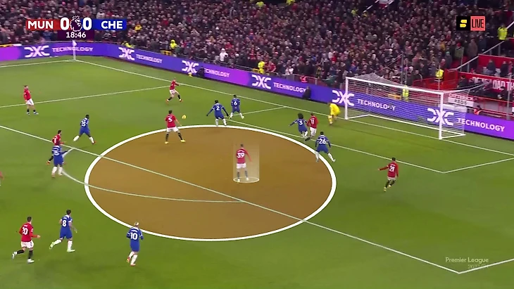 Следствием прессинга «МЮ» стал не только территориальный перевес, но и моменты. К такому раскладу привело сочетание факторов. Разумеется, прессинг «Юнайтед» был прекрасно организован, но также бросалась в глаза готовность «Челси» разыгрывать коротко и рискованно, даже когда пошла острота у ворот Роберта Санчеса.
