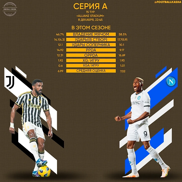 в ползу Юве, в таком состоянии когда не в форме Осимхен а Квара играет не очень ярко думаю им не удастся забить мотивированному Ювентусу который в таком состоянии и так не пропускает и вернулся Данило так что Наполи не сможет забить, а Три гола Юве придут а того что Наполи не в лучшем свой форме, в зашите у них проблемы которыми Ювентус точно воспользуется, думаю с мотивации у Туринского клуба проблем не будет, и с такой слабенькой зашитой Наполи порезвиться захотят все ( а их там много Душан-Кьеза и Моизе Кинь с Аркадюшем Миликом) все они очень жаждут забить и доказать что заслуживают играть в основе, плюс очень мотивирован и в своей лучшей форме Рабио, плюс последний матчи у Юве забивают сплошь защитники (Бремер, Гати, Камбиязо, и вернувшись Данило) а главное что в Турине хорошо помнят 5-1 от Наполи когда у Юве были трудности, сейчас все примерно наоборот, так что когда будет мстить Ювентус если не сейчас.. так что думаю 3-0😉