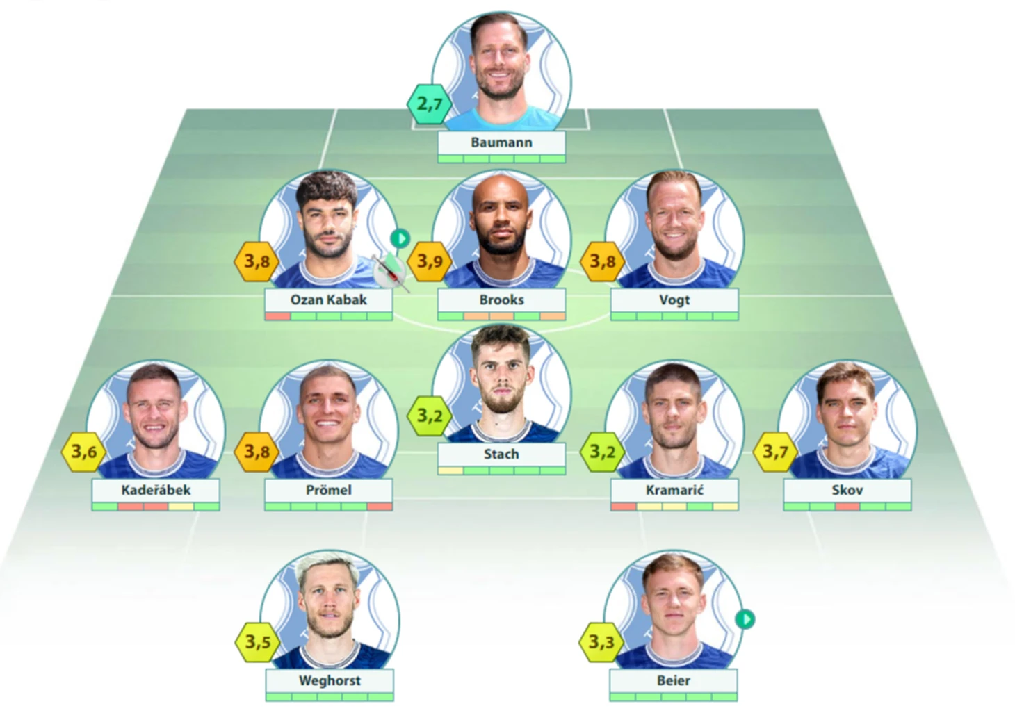 «Хоффенхайм»: Baumann (c) – Vogt, Brooks, Szalai – Kadeřábek, Prömel, Stach, Skov - Kramarić - Weghorst, Beier